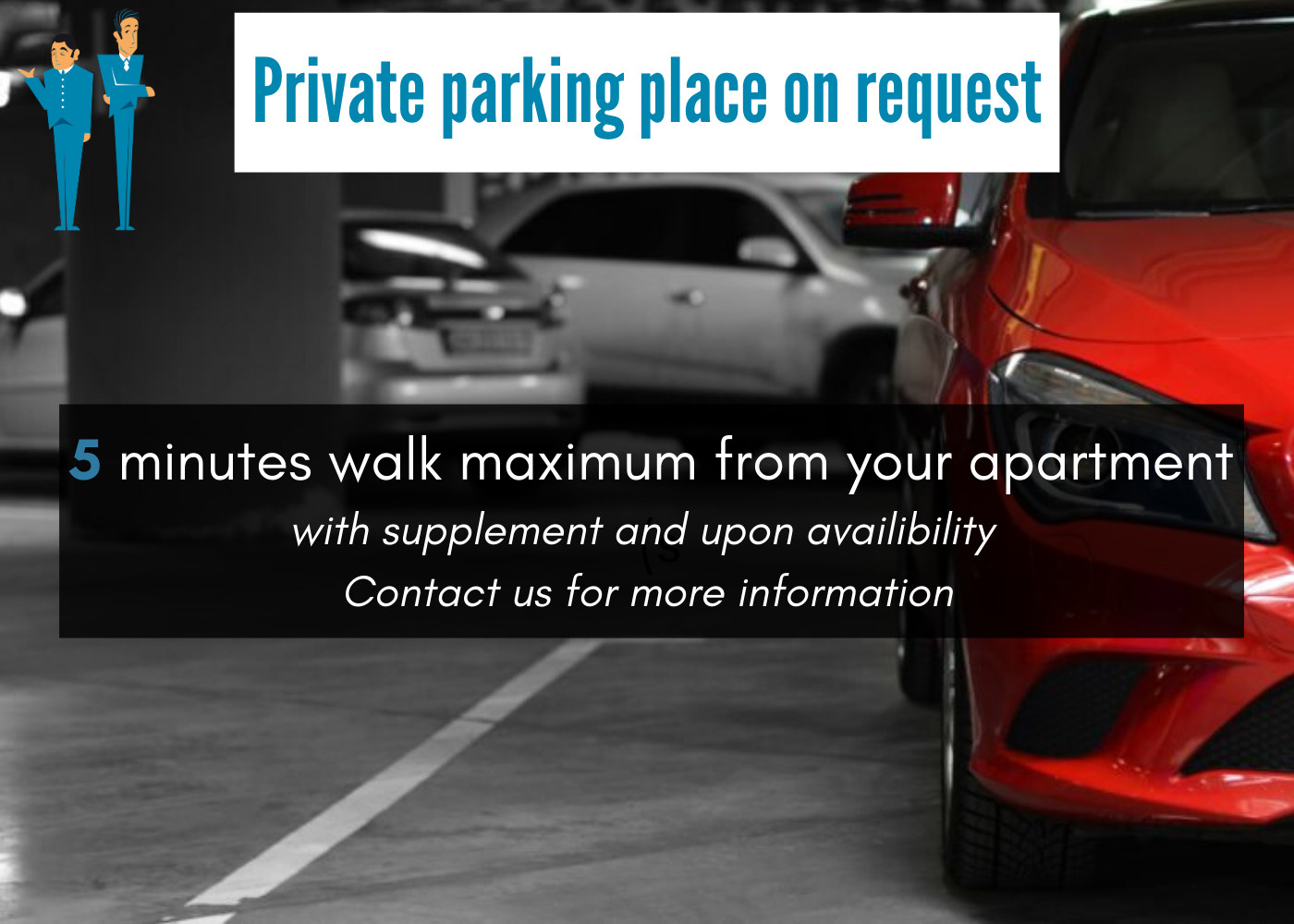 Please note: The included parking is shared, with no assigned spots and limited availability. A private parking space 10 minutes away is available on request and subject to availability, at an additional cost.