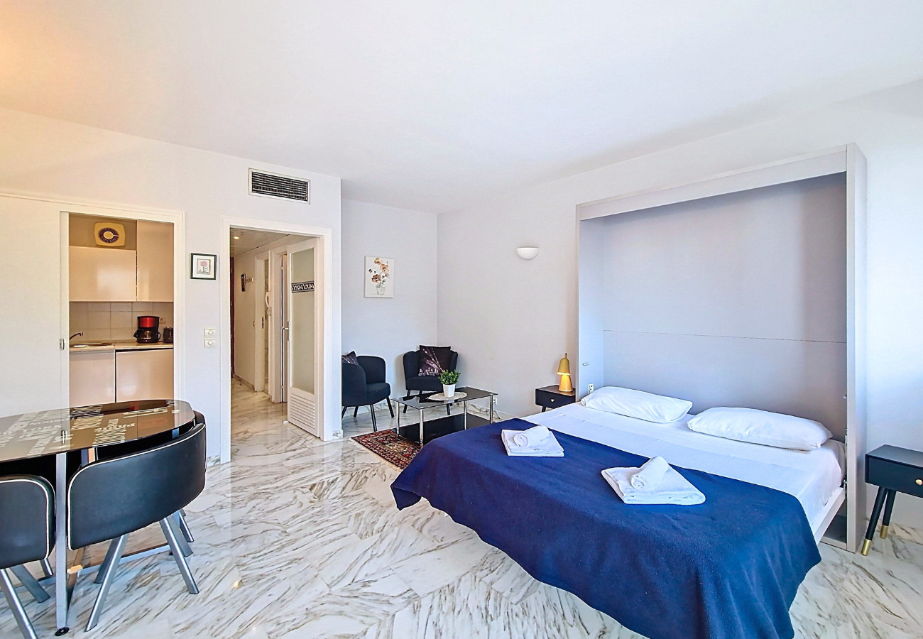 The studio is located in a lively neighborhood next to the Promenade des Anglais, close to the pedestrian zone, Place Masséna, and the charming Old Town of Nice.