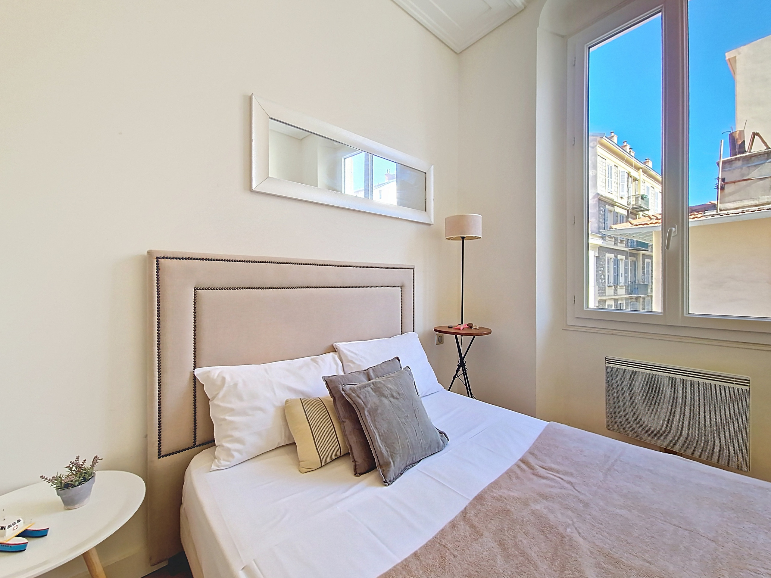 Ce logement offre un bon confort pour un séjour moyen terme, dans une ambiance niçoise.