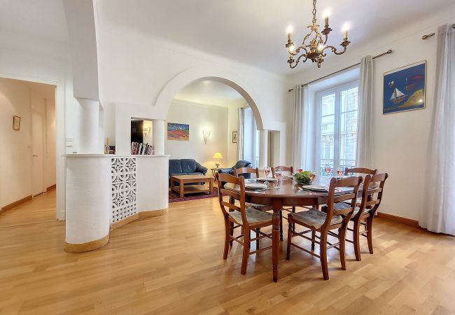 DALPOZZO GRANDE est un spacieux appartement traversant avec 3 chambres et 2 salles de bain idéalement situé en centre-ville à quelques mètres de la Promenade des Anglais.