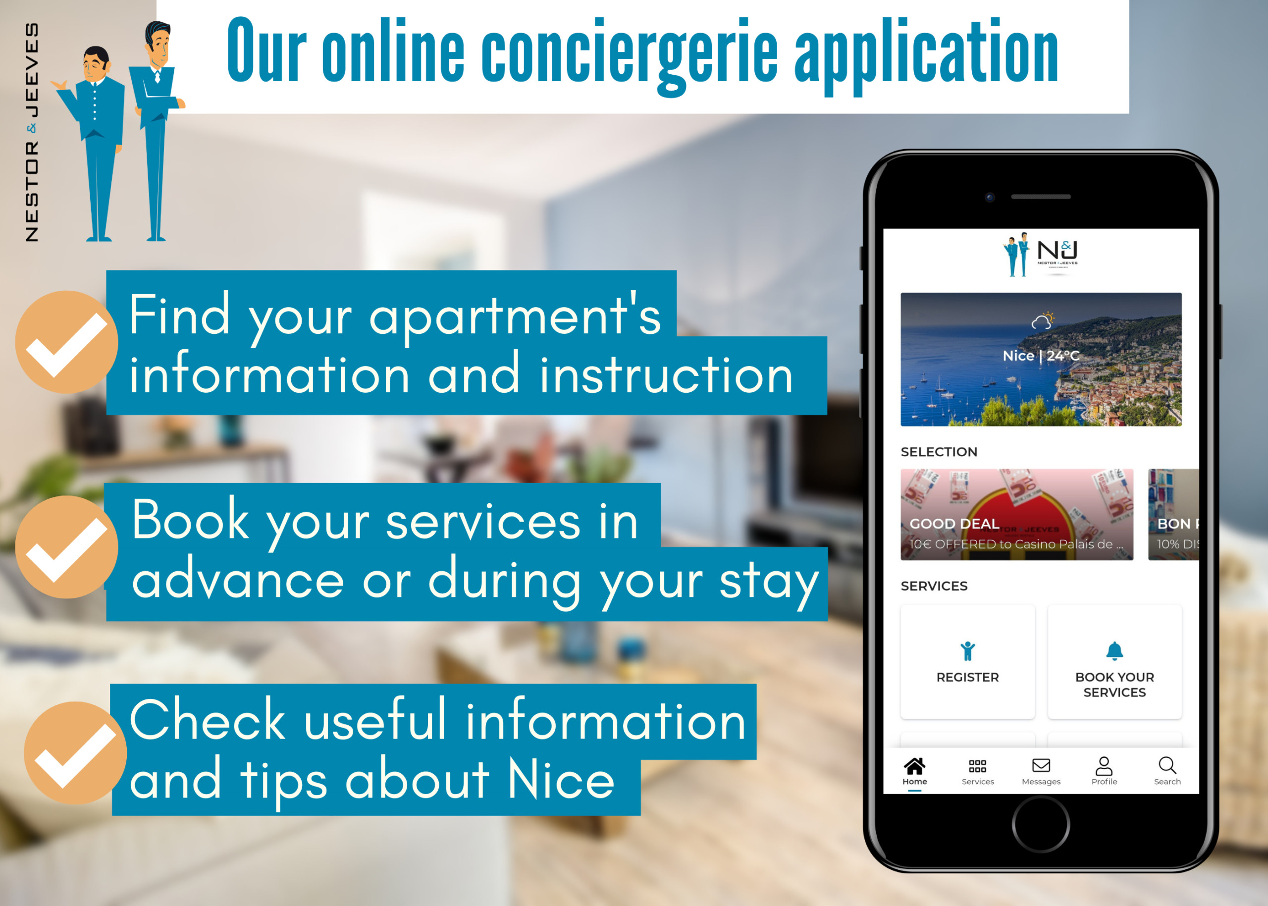 La Conciergerie « boutique » Nestor & Jeeves située dans le centre de Nice sera présente pour vous accompagner pendant toute la durée de votre séjour.