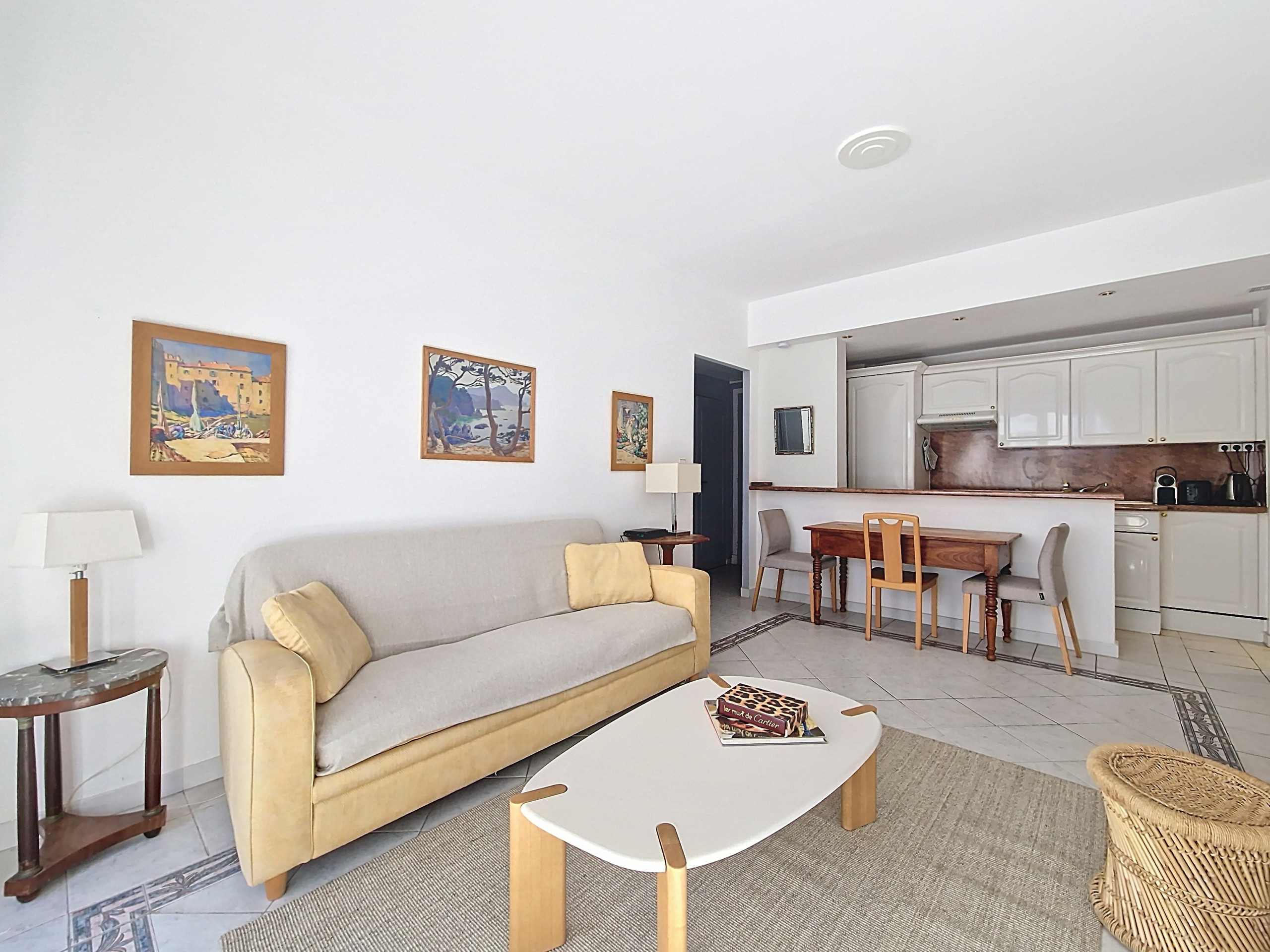 L’appartement qui est très bien agencé comprend un séjour climatisé avec cuisine américaine équipée, d’une chambre confortable avec lit queen size et rangements, d’une salle de bain avec douche, de toilettes indépendantes, ainsi que d’une terrasse privative accessible à la fois depuis le salon et la chambre, idéal pour profiter du climat méditerranéen.