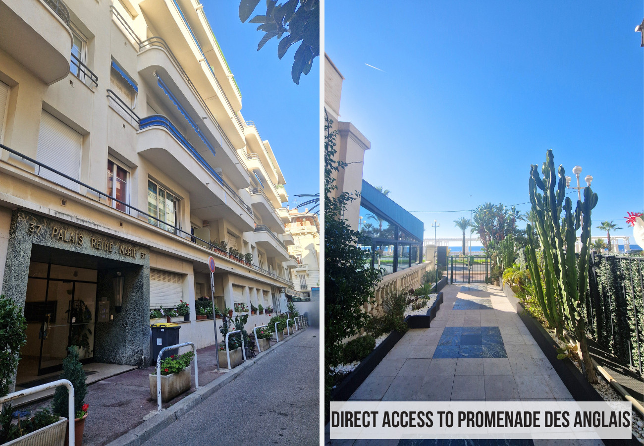 L’immeuble dispose d’un ascenseur, et l’appartement qui est au 2e étage bénéficie d’un emplacement privilégié, à proximité immédiate des plages, des commerces, et à seulement quelques minutes à pied de la place Masséna et du centre-ville de Nice.