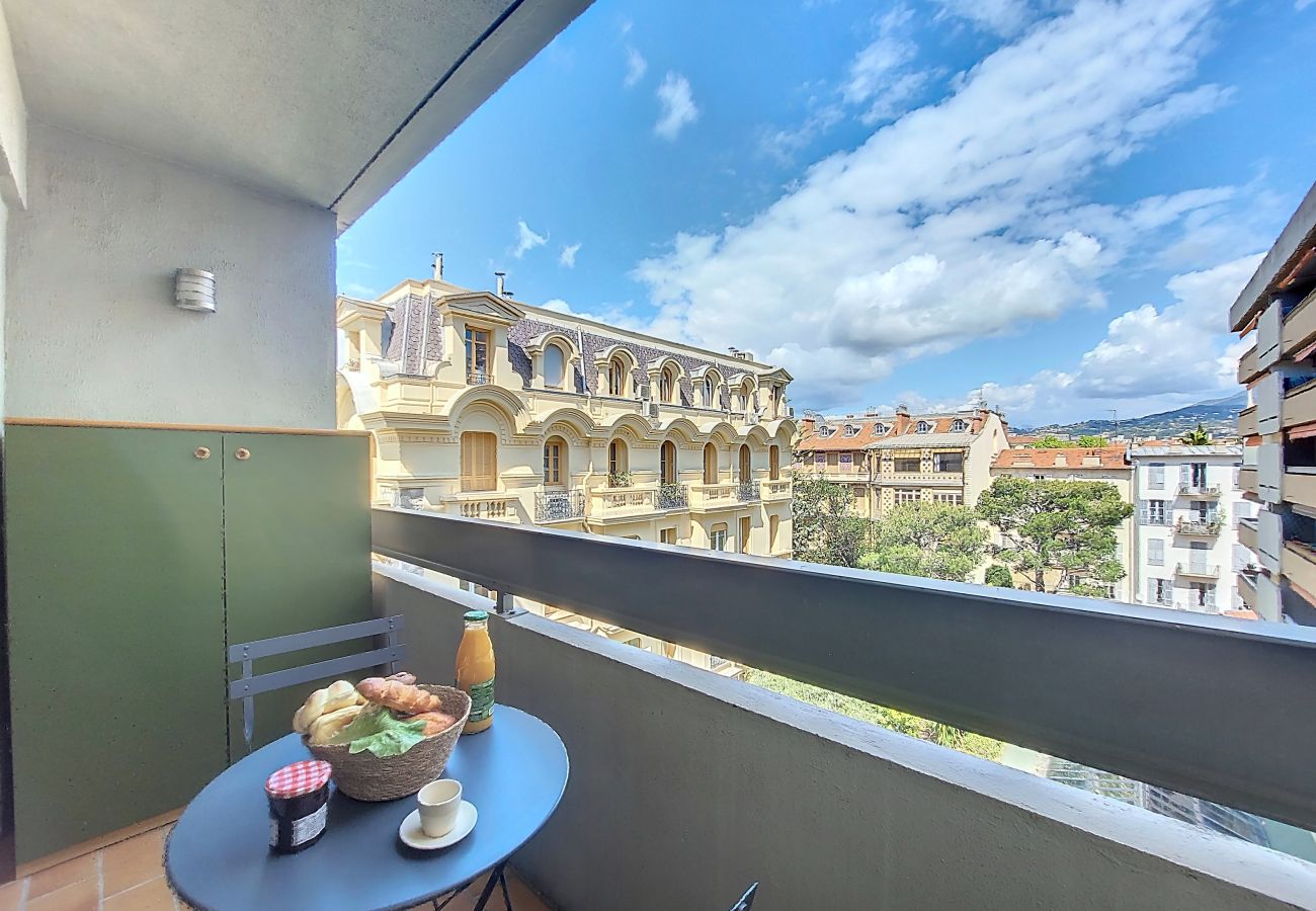 Venez découvrir ce spacieux studio climatisé, agrémenté d'un balcon offrant une vue sur les collines niçoises.